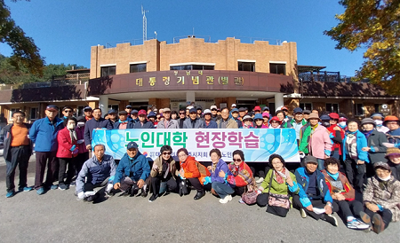 전주시지회(지회장 전영배)부설 노인대학(학장 조희정)은 지난 10월 20일 노인대학생 100여명과 임직원이 참여한 가운데 청남대 일원 찾아 추계 현장 체험학습 일정을 가졌다.