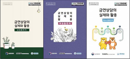 이번 금연상담지침서는 전국 보건소 및 지역금연지원센터 등 300여 개 기관에 책자 형태로 배포될 예정이며, 금연길라잡이(www.nosmokeguide.go.kr) 및 금연두드림 누리집(https://nosmk.khealth.or.kr/nsk/)에서 e-book(전자책)으로도 만나볼 수 있다.