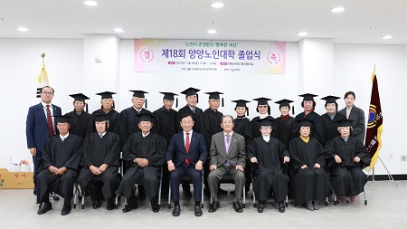 양양군지회(지회장 전용우)는 제18회 양양군지회 부설노인대학 졸업식을 지난 18일에 지회 3층 대강당에서 개최하였다.