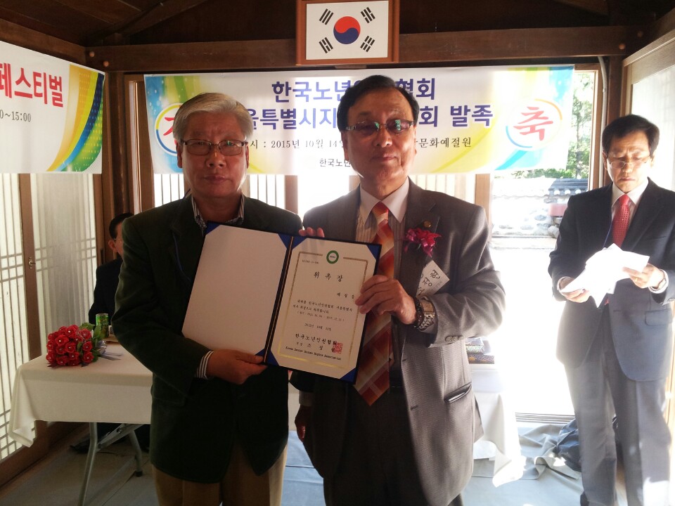 배정웅 서울특별시지부 회장은 대한노인신문사 사장 및 관악노인대학장으로서 노인복지에 지대한 관심을 가지고 지속적인 노인복지 정책 제안 및 다양한 봉사활동을 해오고 있으며, 또한, 최한준 지회장은 한일건축 대표로서 지역사회 발전 및 봉사활동에 적극적으로 참여하고 있어 주목받고 있다.