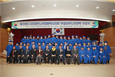 평택시지회(지회장 이익재) 부설 남부노인대학(학장 이근표)은 지난 6일, 2022년 제26회 수료식을 개최했다.