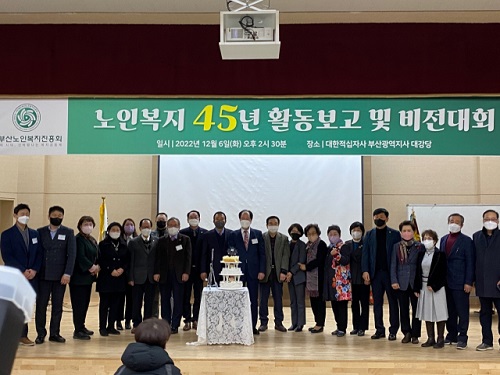 부산노인복지진흥회(회장 김만률)는 12월 6일 부산적십자회관 1층 대강당에서 ‘노인복지 45년 활동 보고 및 비전선포대회’를 개최하고 ‘100세 시대, 신바람 나는 복지공동체’로 제2의 도약을 결의했다.