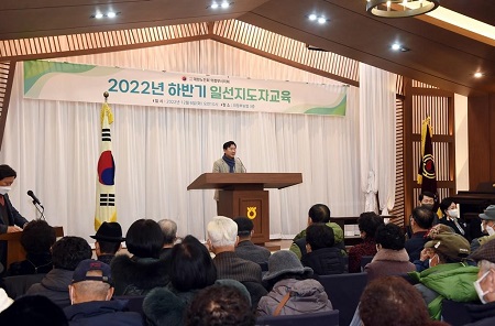 한편, 이번 일선지도자 교육은 직무 능력 향상과 투명한 예산 집행 등을 위한 임진묵 사무국장의 실무교육과 시니어전문 박태원 강사의 ‘인간과 지도자의 역할’을 주제로 강의가 이루어졌다.