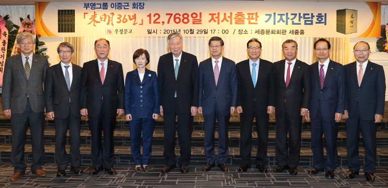 부영그룹 이중근 회장은 지난 29일, 세종문화회관 세종홀에서 편년체 역사서 「미명(未明) 36년 12,768일」 출판 기자간담회를 가졌다.