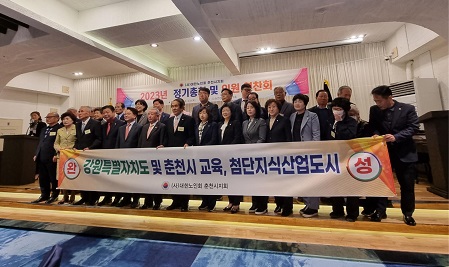 춘천시지회(지회장 최승민)는 3월 23일 춘천시 내 미래컨벤션 웨딩홀에서 2023년 정기총회와 연찬회를 열었다.