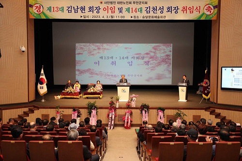 무안군지회(지회장 김천성) 제13대·14대 지회장 이·취임식이 지난 3일 승달문화예술회관 대강당에서 개최됐다.
