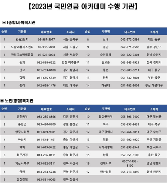 ‘국민연금 아카데미’ 사업은 2학기제[1학기(5~7월) 방학 2학기(9~11월)[로 운영하고, 복지관당 30명씩 무료로 참여할 수 있다.