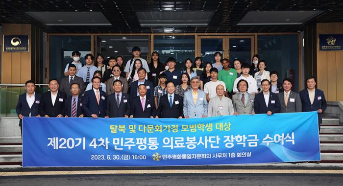 또한, 민주평화통일자문회의(민주평통) 의료봉사단(단장 김철수)은 6월 30일 북한이탈주민과 다문화 가정 모범 학생을 대상으로 ‘민주평통 의료봉사단 장학금 수여식’을 사무처에서 개최했다.