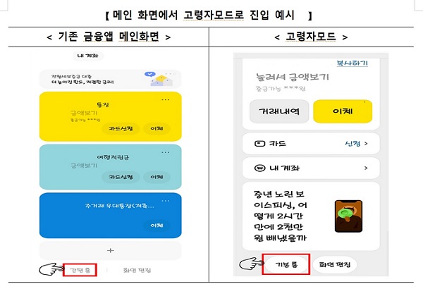 앞서 금융당국은 은행권과 공동으로 실무추진단을 구성해 고령자 친화적 모바일 금융앱 구성지침을 마련하고, 올 상반기까지 고령자모드를 출시하기로 했다.