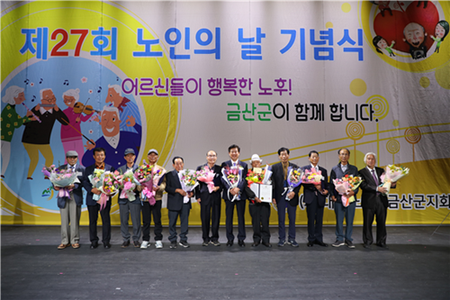 표창 수여식에서는 모범 노인과 노인복지에 기여한 공로로 충남도지사표창 2명과 금산군수표창 25명, 충남도의회장 표창 2명, 금산군의회의장 표창 5명을 비롯해 금산군지회장표창 7명이 상을 받았다.