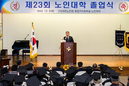 이날 졸업식은 윤환 계양구청장을 비롯해 김대기 계양구지회장, 조양희 계양구의회 의장, 노인대학 학생 등 160여 명이 참석한 가운데 학사보고와 졸업장 수여, 시상 순으로 진행됐다.