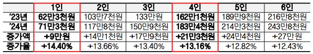 보건복지부는 1월부터 기초생활보장 생계급여가 최대 21만 3천 원(4인 가구 기준) 늘어난다고 밝혔다. 이는 지난 5년간(2018∼2022) 전체 증가분(19만 6천 원)보다 많은 것으로 기초수급자에 대한 혜택이 크게 늘어난다.