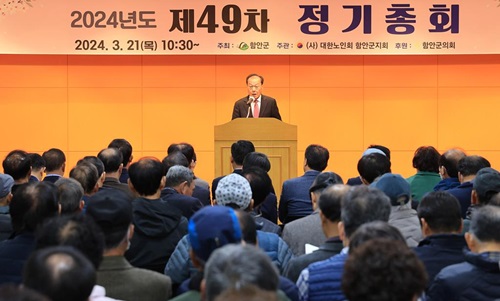 함안군지회(지회장 이학동)는 21일 함안문화예술회관 연회장에서 조근제 함안군수, 조영제‧조인제 경남도의원을 비롯한 주요 내빈, 노인회 군지회 임원, 대의원, 읍면 경로당 회장 등 380여 명이 참석한 가운데 제49차 정기총회를 개최했다.