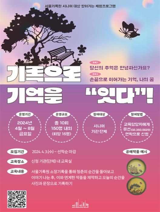 서울기록원 고경희 원장은 “「기록으로 기억을 ‘잇다!’」 프로그램을 통해 시니어분들이 단순히 과거를 회상하는 것을 넘어, 그 시절의 생생한 순간들을 기록을 통해 경험하는 것에 참여와 관심을 가져주시기를 바란다.”고 말했다.