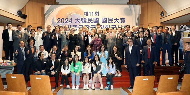 (사)안중근의사문화예술연합회(이사장 김상택) 주최, (재)의사안중근장군장학회(명예 이사장 이수성)와 (사)평화통일 범국민운동본부, (사)나라(독도)살리기국민운동본부, 세계기독교 K성지 건립위원회 주관으로 4월 19일 서울 서초구 소재 윤봉길의사기념관에서 ‘제11회 2024 大韓民國 國民大賞 시상식’ 및 ‘의사 안중근 장군 장학금 수여식’이 개최되었다.