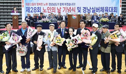 올해로 28번째를 맞은 ‘노인의 날 기념식’에는 박완수 경상남도지사를 비롯해 유계현 도의회 부의장, 신희범 경상남도연합회장, 조규일 진주시장 및 도내 어르신 등 3천여 명이 참석해 자리를 빛냈다. 기념식은 노인강령 및 경로헌장 낭독, 유공자 포상, 기념사 및 축사와 함께 실버체육대회 시작을 알리는 시·군 선수단의 화려한 퍼레이드가 펼쳐졌다.