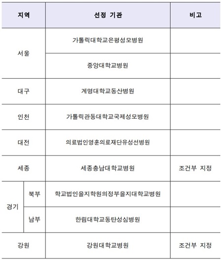 구성 및 진료역량 등에 대한 평가를 거쳐 총 9개소를 지정하였다.