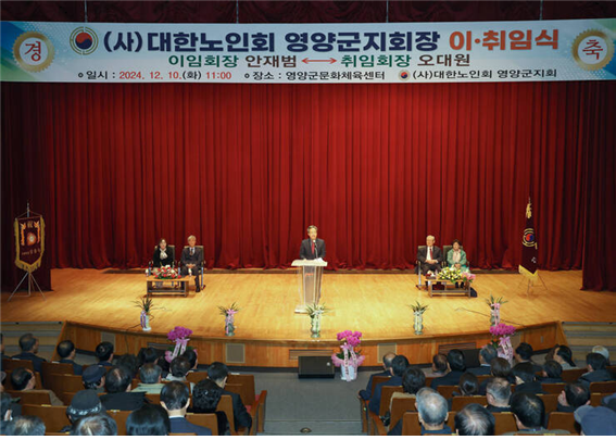 영양군지회는 10일 영양군 문화체육센터에서 제14·15대 지회장 이·취임식을 개최했다.  이날 행사에는 기관단체장 및 경로당 회장 등 250여 명이 참석한 가운데 국민의례, 노인강령 낭독, 영양군인재육성장학금 기탁, 공로패 및 감사패 수여, 이·취임사, 축사 등의 순으로 진행됐다.