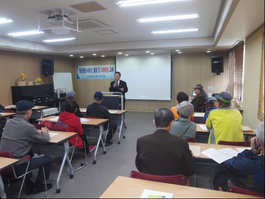 교육강사요원은 노원구지회장(이순옥), 노인대학 학장(한대영)으로 구성하였으며 올해 처음으로 노원구민회관 3층 자원봉사회의실에서 상계동 경로당 회장 70여 명과 함께 통신 서비스 활용 및 피해예방에 대하여 강의를 진행했다.