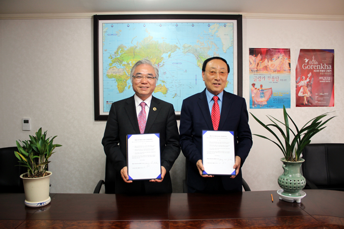 업무협약(MOU) 체결 후 기념촬영을 하고 있는 박상원 발행인(왼쪽)과 이상도 발행인(오른쪽).