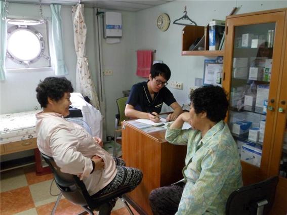 사천시 용남면 수도에 거주하는 천학률(81세) 어르신은 “교통이 불편해 몸이 아파도 병원을 가기가 힘든데 병원선 의사 선생님이 감기약과 위장약 등을 처방해 주어 좋다”고 말하며, “특히, 고혈압이 있는데 정기적으로 혈당도 체크하고 무료로 약을 주어 감사하다”고 병원선 진료에 대해 만족해했다.