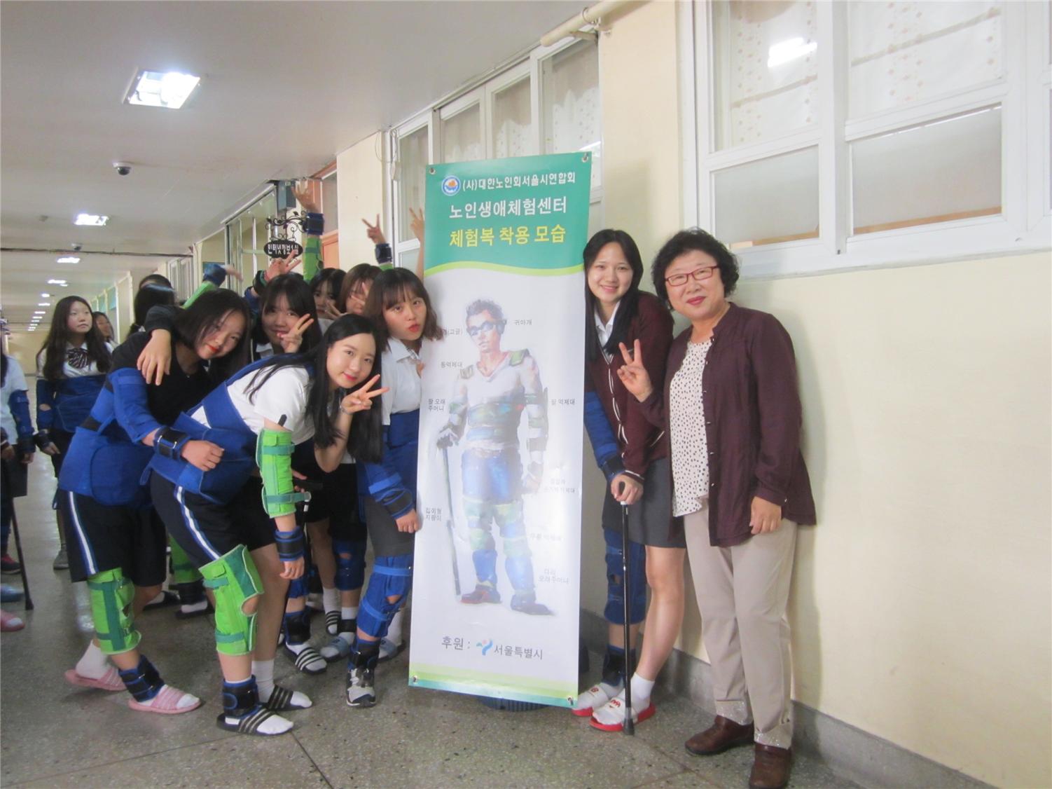대한노인회 서울시연합회 노인생애체험센터에서는 지난달 10일 경기도 의정부시 소재의 경민비즈니스고등학교에서 재학생 중 복지과 2, 3학년 6개 학급 180여 명이 참여한 가운데 노인복지관련 봉사 수업의 일환으로 학교이동체험을 실시했다.