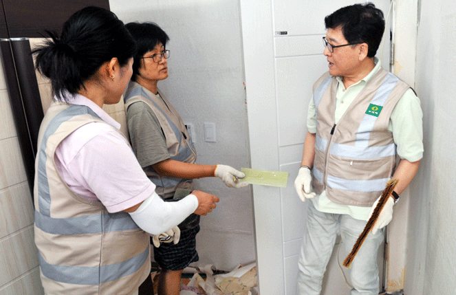 정진엽 보건복지부 장관은 ‘일을 통한 탈빈곤’의 현장을 점검하고, 수급자들의 의견을 청취하기 위해 자활기업 소속 수급자들과 함께 주거급여 집수리에 참여하였다.