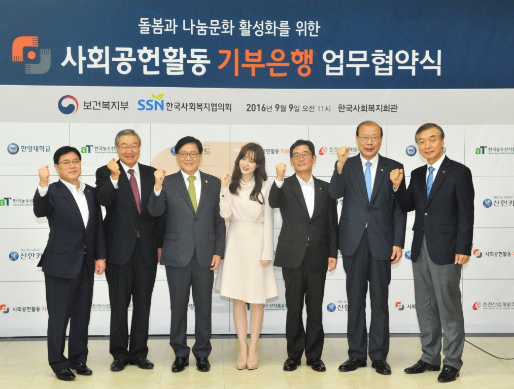 이날 사회공헌활동 기부은행 업무협약 체결에 앞서 보건복지부는 나눔홍보대사로 탤런트 구혜선 씨를 선정하고, 위촉패를 수여했다.