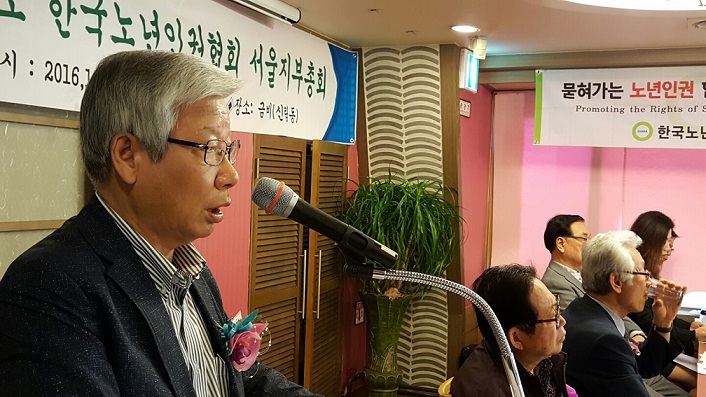 인사말을 하고 있는 배정웅 한국노년인권협회 서울지부 회장.