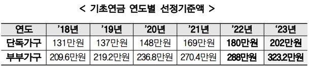 보건복지부는 2023년도 기초연금 선정기준액을 단독가구
