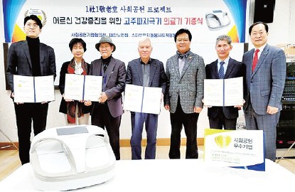 금천구지회(지회장 박세구)는 2월 20일에 금천구 관내 사회공헌의 뜻을 같이하는 기업들로부터 어르신들의 건강증진을 위한 노인복지와 후원 기업의 사내 직원 복지를 함께 충족시킬 수 있는 의료기(고주파자극기)를 금천구 경로당에 후원하는 기증식을 가졌다.